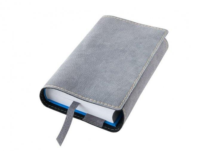Variabilní kožený obal na knihu se záložkou – kůže šedá semiš