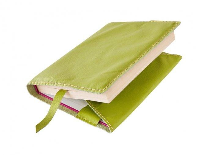 Variabilní kožený obal na knihu se záložkou – kůže zelená