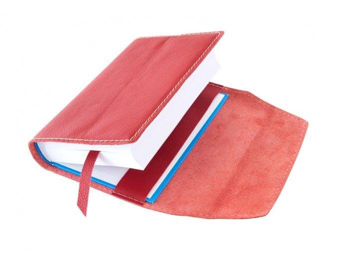 Variabilní kožený obal na knihu se záložkou – kůže červená